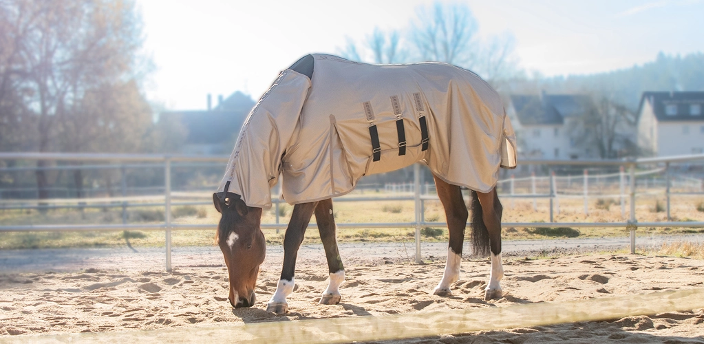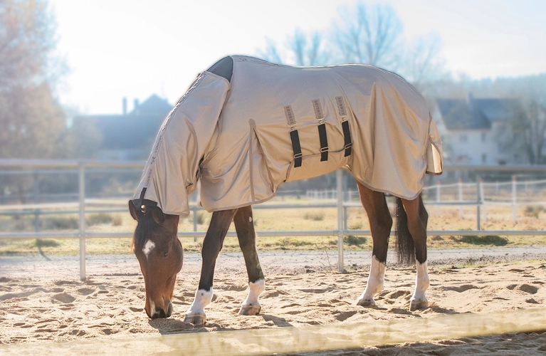 As soon as temperatures rise, flies, mosquitoes, and horseflies become a real nuisance for horses. They donβt just bother them but can also cause skin irritations and restlessness. Constant head shaking, tail swishing, and nervous pawing are clear signs of insect stress. A well-designed fly sheet can help and ensure relaxed hours in the pasture or stable.