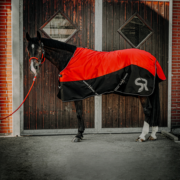 Die speziell entworfene Pferdedecke ist eine hochwertige Winterdecke, die entwickelt wurde, um Pferden maximalen Komfort, Wärme und Schutz vor den Herausforderungen der winterlichen Wetterbedingungen zu bieten. Ein besonderes Merkmal dieser Winterdecke ist die Verwendung von sorgfältig ausgewählten Materialien wie Ripstop 1200D, die für ihre Langlebigkeit und hohen Komfort bekannt sind. Das äußere Material der Decke besteht aus strapazierfähigem Gewebe, das das Pferd vor Kälte und Wind schützt. Die Decke ist mit einer 250g Füllung ausgestattet, die dem Pferd ausreichend Wärme bietet, ohne es zu überhitzen. Selbst bei niedrigen Temperaturen bleibt das Pferd angenehm warm. Neben der Wärmeisolierung zeichnet sich diese Winterdecke durch ihre hervorragende Atmungsaktivität aus. Sie ermöglicht eine effiziente Ableitung von Feuchtigkeit und Schweiß von der Haut des Pferdes. Dadurch wird verhindert, dass das Pferd unter der Decke schwitzt und das Risiko von Hautreizungen und Unwohlsein minimiert. Sie ist mit mehreren verstellbaren Verschlüssen ausgestattet, die eine individuelle Anpassung an die Körpergröße des Pferdes ermöglichen. Ein Klettverschluss an der Brust und Kreuzbegurtungen sorgen dafür, dass die Decke sicher an Ort und Stelle bleibt, ohne die Bewegungsfreiheit des Pferdes einzuschränken. Zusätzlich ist eine optionale Brusterweiterung erhältlich, die für Pferde, die zwischen zwei Größen liegen oder etwas breiter gebaut sind, eine bessere Passform gewährleistet. Ein weiteres Sicherheitsmerkmal der Winterdecke sind die reflektierenden Elemente. Diese erhöhen die Sichtbarkeit des Pferdes bei schlechten Lichtverhältnissen, wie sie etwa in den frühen Morgen- oder späten Abendstunden auftreten. Insbesondere bei Aktivitäten wie dem Führen des Pferdes auf die Koppel im Dunkeln erhöht dies die Sicherheit sowohl für das Pferd als auch für den Reiter. Die Winterdecke wurde auch mit Blick auf die Kompatibilität mit Unterdecken entwickelt. Sie kann problemlos mit speziell abgestimmten Unterdecken kombiniert werden, um zusätzliche Wärme zu bieten. Die Unterdecken sind separat oder direkt im Set erhältlich und verfügen über eine spezielle Isolierung, die die Wärme noch besser speichert und gleichzeitig die Atmungsaktivität der gesamten Deckenkombination garantiert. Durch diese Kombination kann die Wärmeisolierung für das Pferd individuell angepasst werden, sodass es unter allen Wetterbedingungen optimale Bedingungen vorfindet. Der Vorteil der Kombination aus Winterdecke und Unterdecke liegt darin, dass die Füllung je nach Wetterlage flexibel variiert werden kann. An milden Wintertagen kann die Winterdecke allein ausreichend sein, während bei eisigen Temperaturen die zusätzliche Unterdecke verwendet werden kann, um die Wärmeleistung zu erhöhen. Um einen Rundum-Schutz vor den Elementen zu gewährleisten, bietet die Winterdecke die Möglichkeit, ein optionales Halsteil mühelos zu befestigen. Dieses Halsteil ergänzt die Decke perfekt und bedeckt den empfindlichen Halsbereich des Pferdes, wodurch es vor Wind und Kälte geschützt wird. Trotz des zusätzlichen Schutzes gewährt das Halsteil dem Pferd ausreichend Bewegungsfreiheit, sodass es sich weiterhin ungehindert bewegen kann.